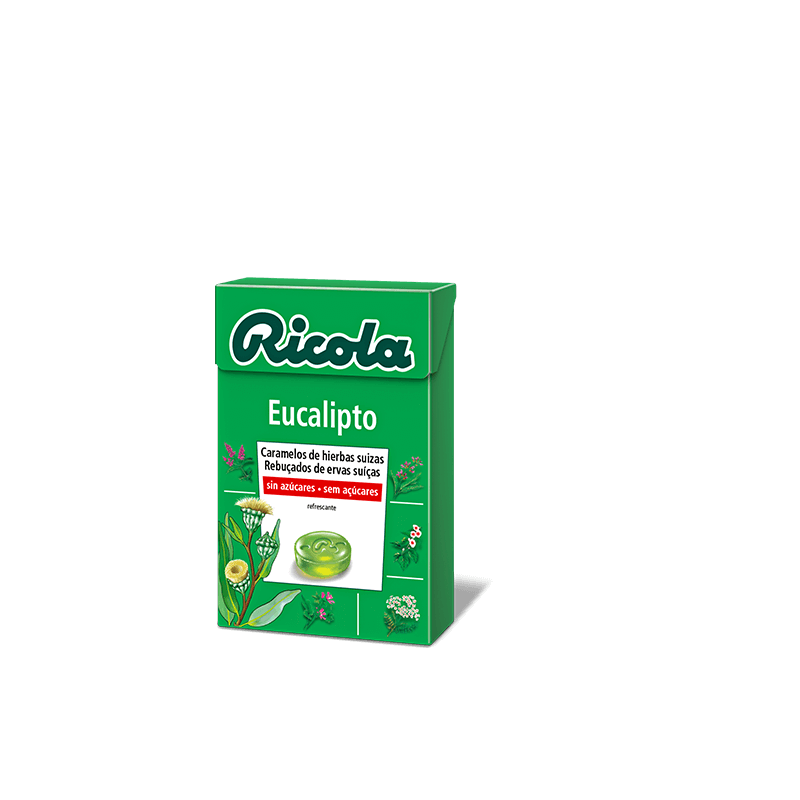 Las hojas de eucalipto contienen aceites esenciales que, de manera tradicional, se han utilizado para las vías respiratorias. Como curiosidad, los koalas de Australia se alimentan exclusivamente de hojas de eucalipto. Junto con el mentol, los extractos de eucalipto mejoran la mezcla de 13 hierbas. Los caramelos de eucalipto de Ricola proporcionan un aliento fresco.