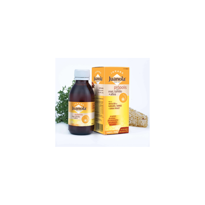 Complemento alimenticio con própolis, miel, tomillo y altea. Jarabe para la irritación de garganta, faringe y cuerdas vocales gracias a añadir al Própolis y a la Miel la acción del tomillo y la altea.