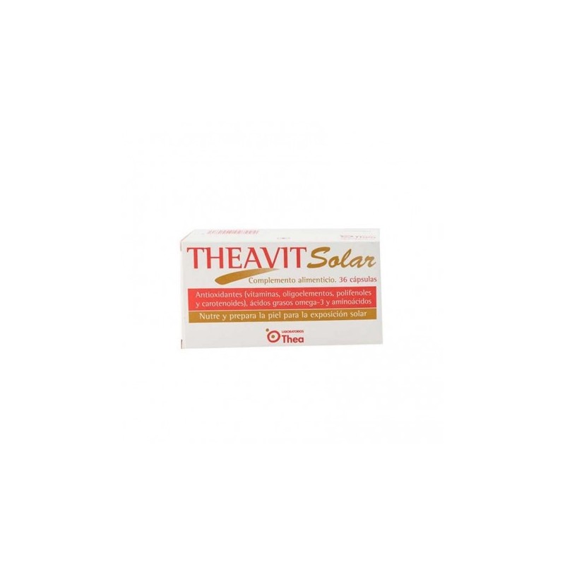 Theavit solar 36 cápsulas es un complemento alimenticio indicado para mantener nuestra piel protegida de los efectos nocivos del sol.