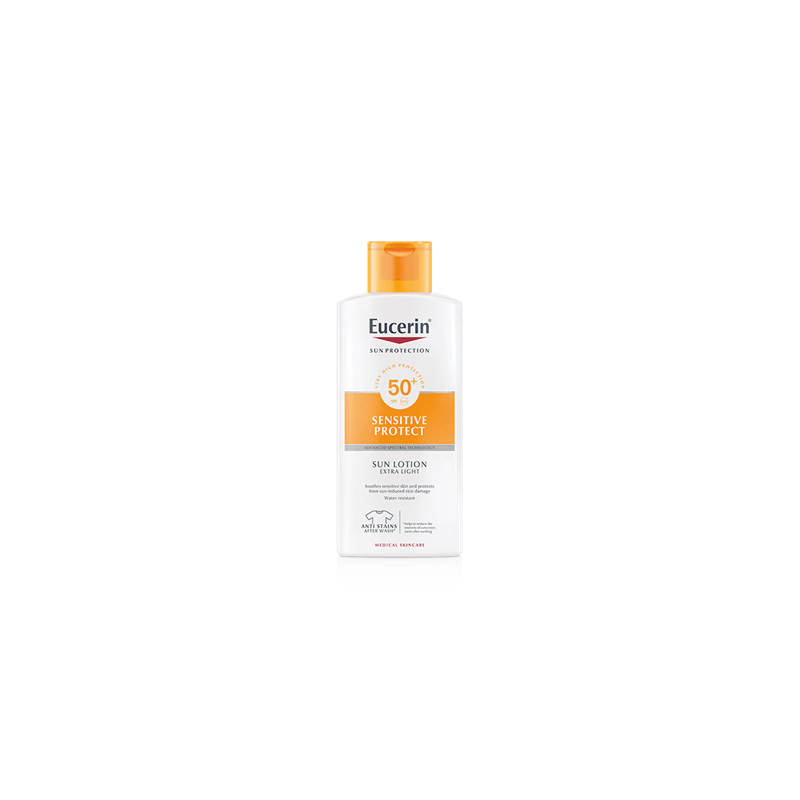 Eucerin Sun Loción Extra Light FPS 50 es una loción extraligera que se absorbe inmediatamente en la piel para proporcionar un elevado nivel de protección solar.