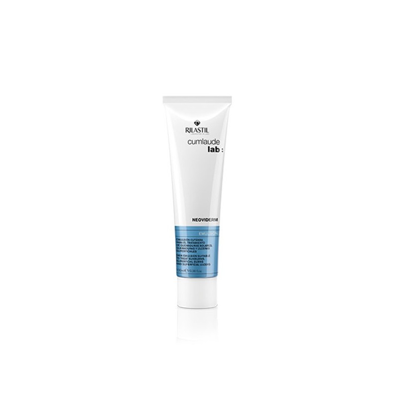 La emulsión cutánea Cumlaude Neoviderm hidrata y cuida la piel afectada por quemaduras. Válido para quemaduras solares, I y II grado, tratamientos de radioterapia, úlceras, irritaciones de tratamientos agresivos. Calma y alivia la piel, y facilita el proceso de regeneración. Sin filtro solar, clínica y dermatológicamente testado.