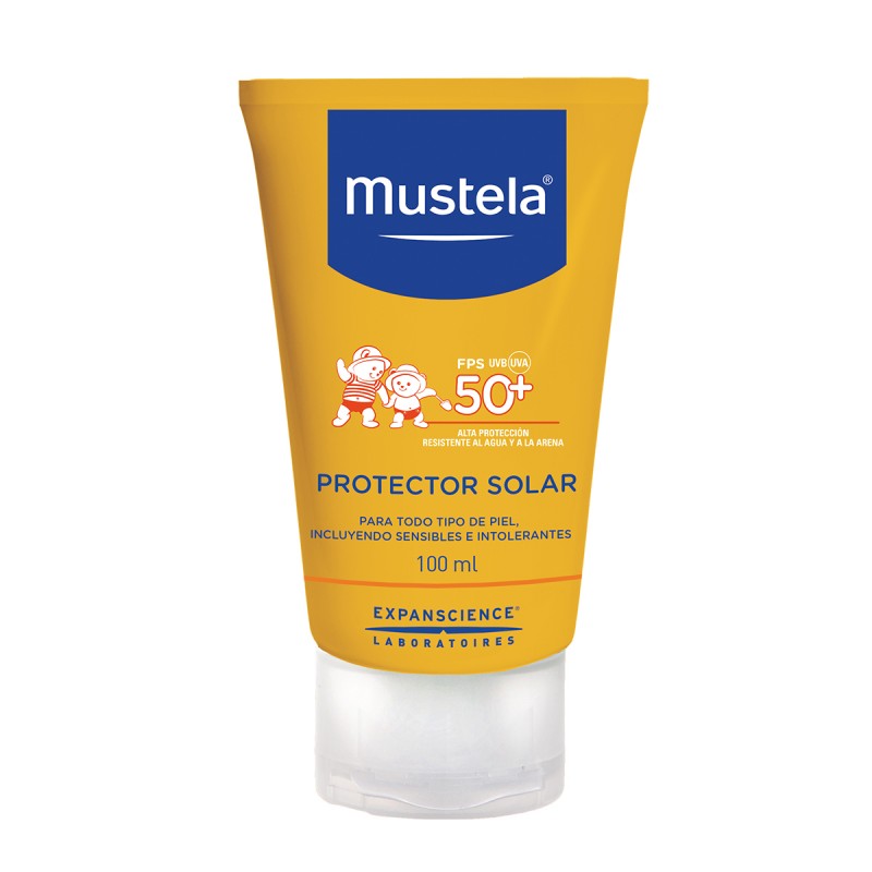 Protector solar facial de FPS 50+ formulado para la delicada piel facial de los bebés y niños.
