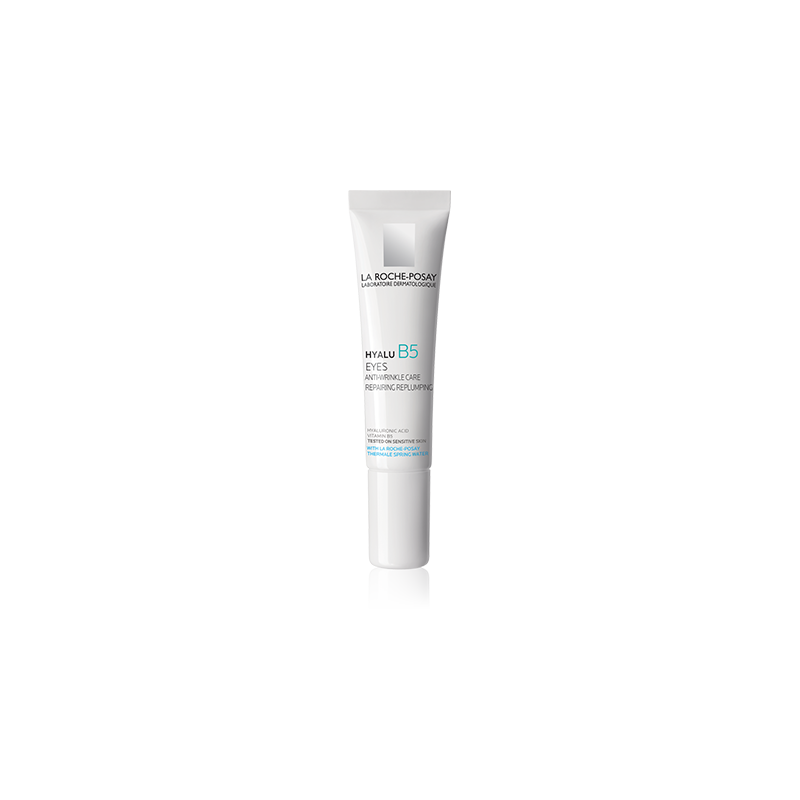 HYALU B5 Cuidado, nuestra primera solución antiarrugas que repara y rellena la piel del contorno de los ojos sensibles.
