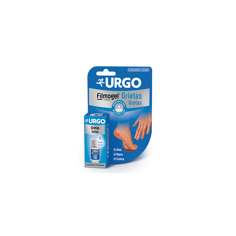 Gracias a la tecnología URGO Filmogel®, la aplicación localizada del producto sobre las grietas permite, al contacto con el aire, la formación de un film protector. URGO Grietas Filmogel® alivia el dolor, protege y evita la reapertura de la grieta. Transparente y resistente al agua, favorece la cicatrización de las grietas.