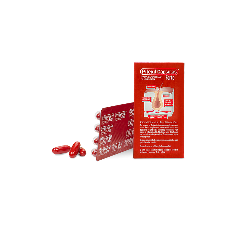 Pilexil Cápsulas Forte, también incluye Vitamina E, que contribuye a la protección de las células frente al daño oxidativo, y Zinc que contribuye al mantenimiento del cabello y de las uñas en condiciones normales.