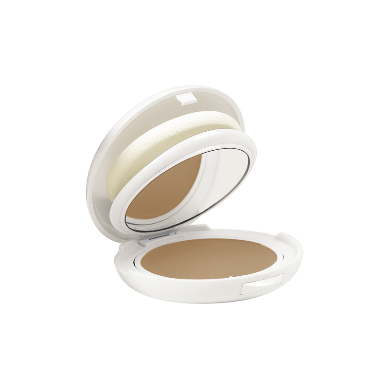 Compacto Color SPF 50 Arena. Sin filtros químicos. Sin perfume. Alta protección solar y maquillaje para las pieles intolerantes. Resistente al agua. Protección de amplio espectro UVB-UVA. Complejo de pantallas minerales, estable y eficaz en el tiempo.
