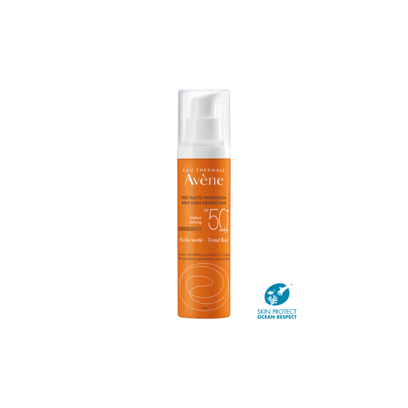 Fluido SPF 50+ Color. Muy alta protección solar del rostro para pieles sensibles normales a mixtas. Fotoestable. Unificante. Tacto seco. Oil-free.