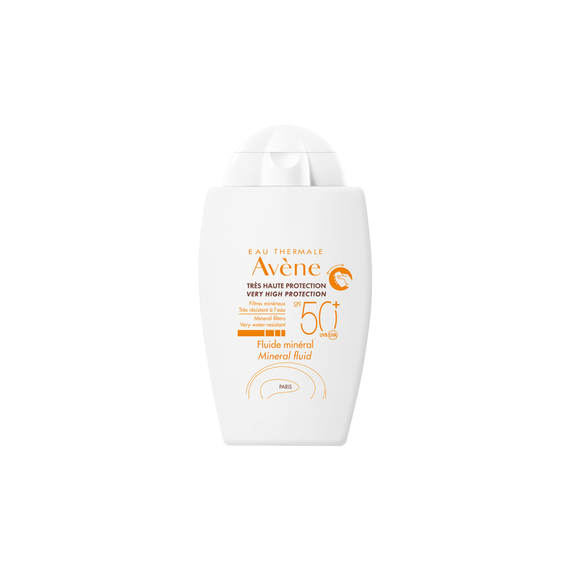 Fluido SPF 50+ Mineral. Sin filtros químicos. Sin perfume. Muy alta protección para la piel intolerante del rostro. Muy resistente al agua. Protección de amplio espectro UVB-UVA. Fotoestable