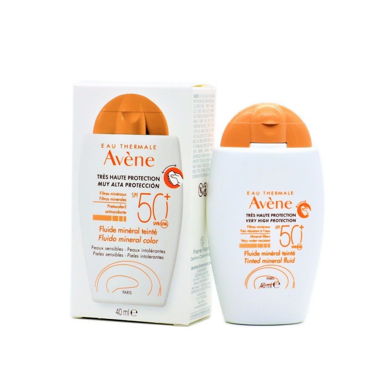 Avene Solar Fluido Mineral Color SPF50+ es un protector solar de muy alta protección especialmente formulado para pieles sensibles, pieles intolerantes a filtros químicos y a los perfumes, pieles frágiles. Con tono dorado que ilumina el rostro.