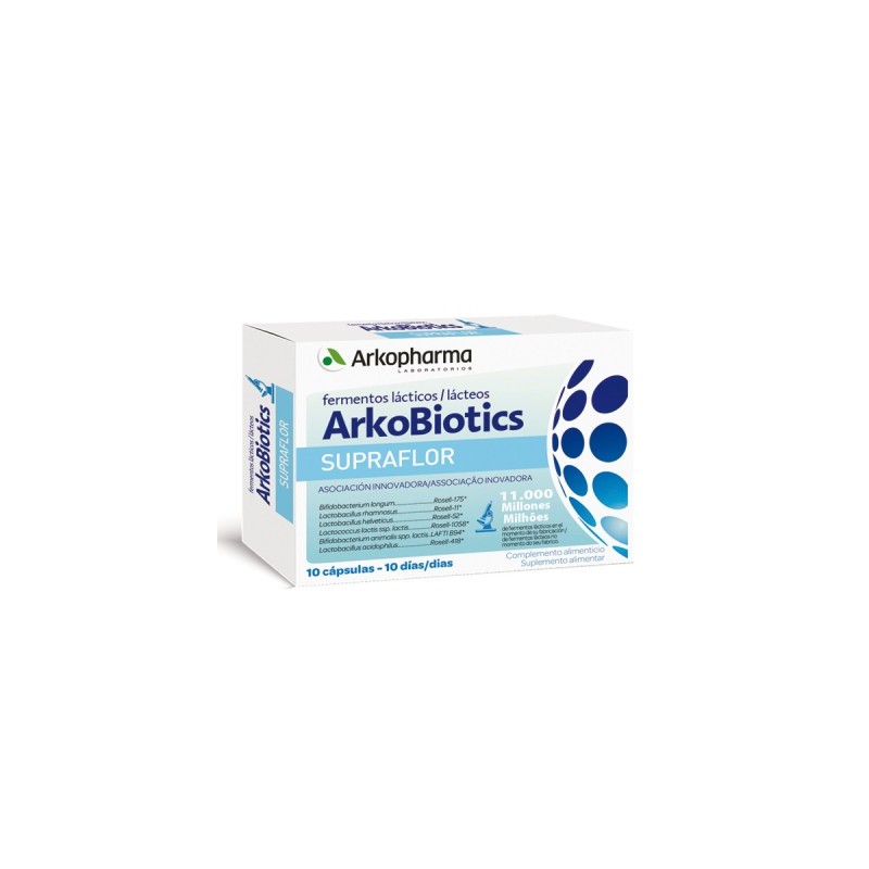 Arkobiotics® Supraflor es un complemento alimenticio a base de 6 probióticos (fermentos lácticos).