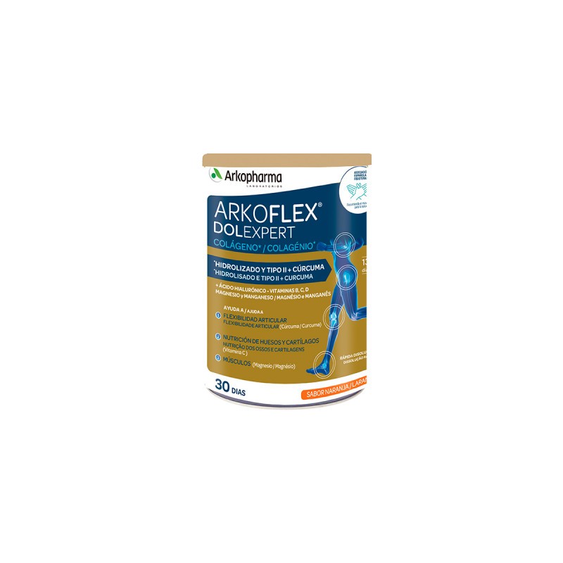 Además de colágeno hidrolizado y tipo II nativo, Arkoflex Colágeno Fórmula Expert, asocia ingredientes especialmente seleccionados por sus benefiicos en el aparato locomotor.