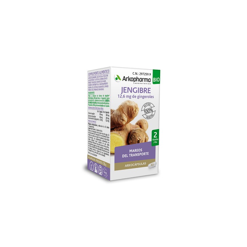 Arkocápsulas® Jengibre BIO es un complemento alimenticio especialmente diseñado para las personas que desean mejorar su digestión o que se marean cuando viajan.