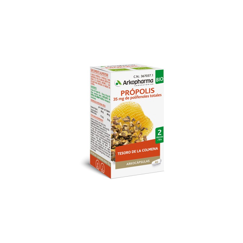 Arkocápsulas® Própolis BIO es un complemento alimenticio a base de Própolis, sustancia que las abejas obtienen de las yemas de algunos árboles y que utilizan para proteger las paredes de la colmena.