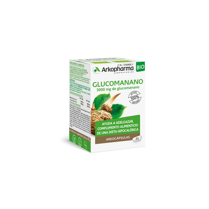 Arkocápsulas® Glucomanano BIO es un complemento alimenticio a base de Glucomanano, que ayuda a adelgazar como complemento alimenticio de una dieta hipocalórica.