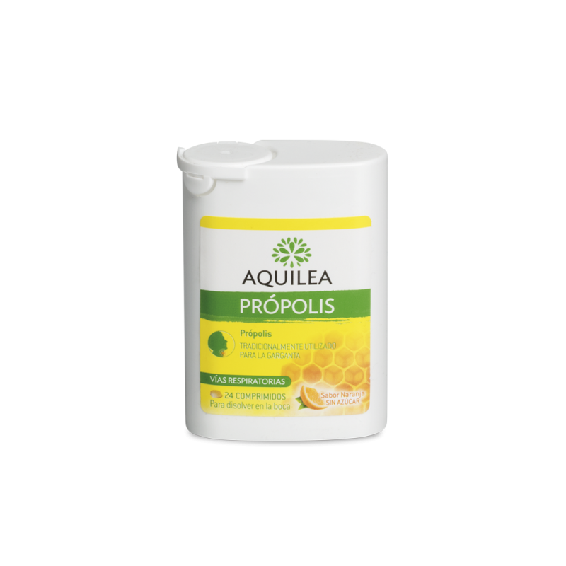 Aquilea Própolis comprimidos es un complemento alimenticio a base de própolis y una combinación de plantas tradicionalmente utilizadas por sus propiedades en las vías respiratorias que ayudan al mantenimiento de la garganta.