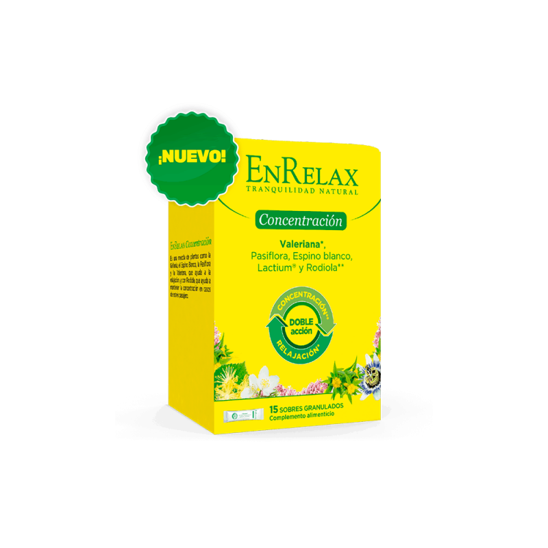Favorece la relajación y ayuda a mantener la concentración en períodos de estrés ocasional. EnRelax Concentración se presenta en un cómodo formato en sobres granulados, ideal para llevar encima y tomar en cualquier momento y lugar.