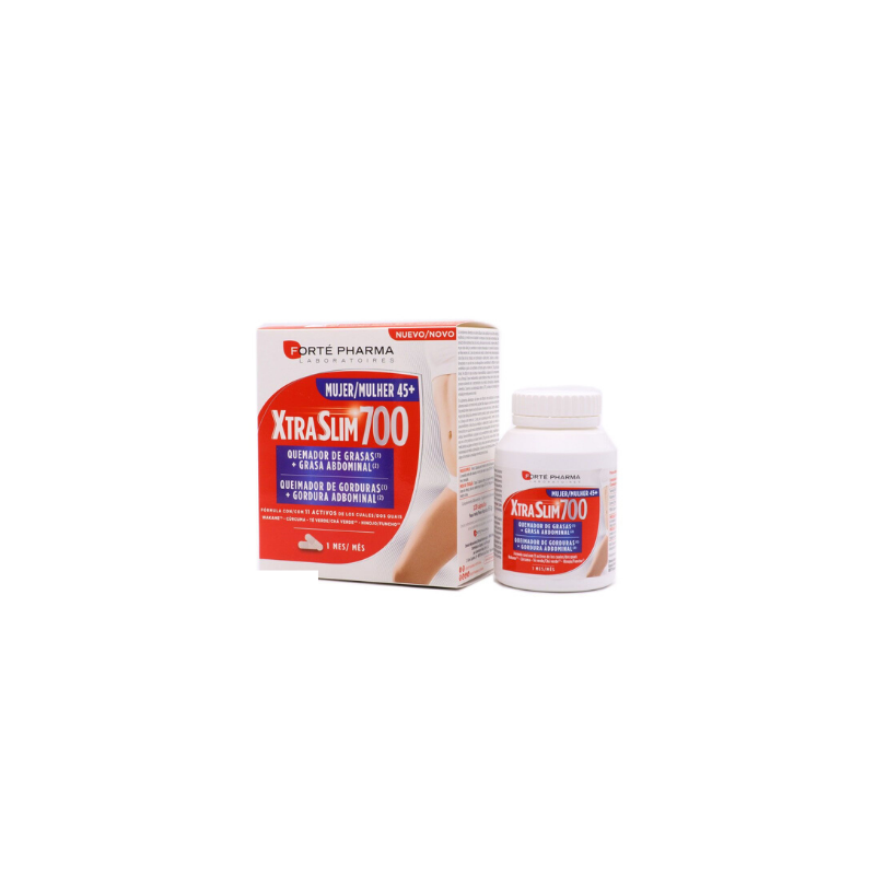 Forté Pharma XTRASLIM 700 Mujer 45+ 120 Cápsulas está especialmente diseñado para mujeres mayores de 45 años que quieran una ayuda para acabar con la grasa abdominal y favorece el metabolismo de la grasa, hidratos de carbono y proteínas