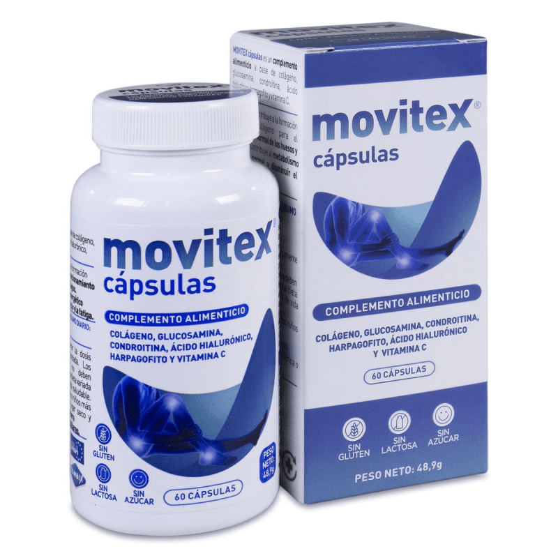 La gama de productos Movitex está basada en complementos alimenticios a base de colágeno, ácido hialurónico, vitaminas y otros ingredientes científicamente probados destinados a la mejora de la salud articular (sin gluten, sin lactosa y sin sacarosa).Todos los formatos corresponden a 1 mes de tratamiento.