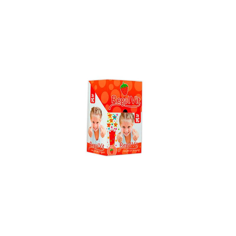 Regaliz de gel dulce con vitaminas y minerales sabor fresa.