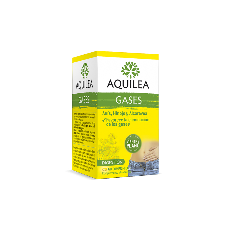 Aquilea Gases contiene anís, hinojo y alcaravea, plantas utilizadas para favorecer la eliminación de los gases y disminuir esas molestias, favoreciendo un vientre plano, gracias a que contiene anís, hinojo y alcaravea plantas tradicionalmente utilizadas para favorecer la eliminación de los gases y disminuir las molestias que éstos provocan de forma natural y eficaz.