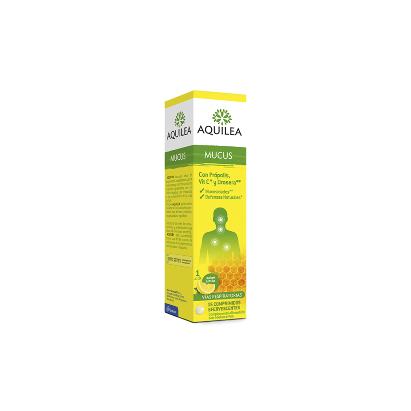 Aquilea Mucus contiene Serratiopeptidasa, N-Acetilcisteína, própolis, vitamina C y Drosera.