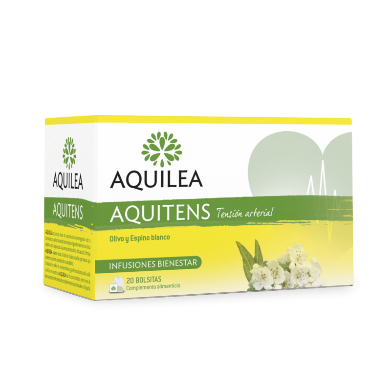 Aquilea Infusión Aquitens es una solución natural para la tensión que ayuda a controlar tu salud y bienestar, mediante una mezcla natural de plantas como el olivo y el espino blanco que contribuyen al mantenimiento de la presión sanguínea normal.