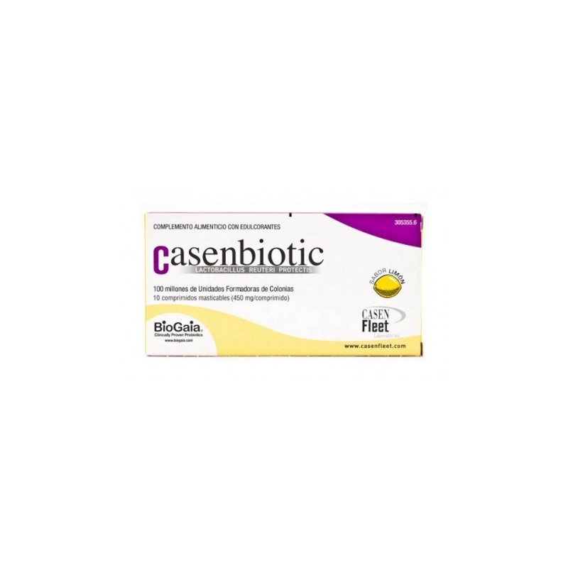 Casenbiotic Limón 10 comprimidos masticables han sido elaborados especialmente para favorecer el equilibrio de la flora intestinal, contribuyendo en la regulación del tratamiento de procesos diarréicos y mejorando el bienestar intestinal. Este complemento alimenticio es especialmente útil cuando tomamos antibióticos, donde la flora intestinal se puede ver dañada, ocasionando diarrea, o como resultado del cambio e alimentación o bebida en un viaje o virus gastrointestinal.