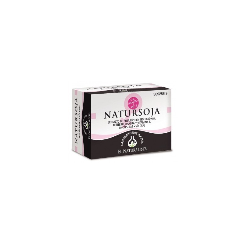 270 mg de aceite de onagra, 40 mg de isoflavonas, 12 mg de vitamina E. Extracto de soja rico en isoflavonas con onagra y vitamina E.