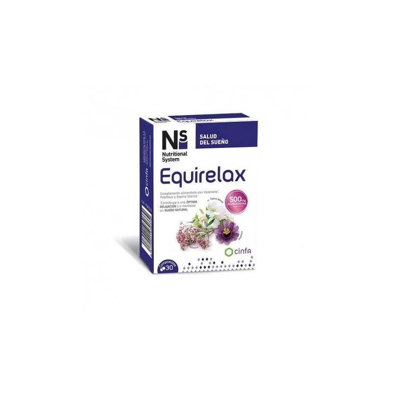 NS Equirelax 30 Comprimidos para recuperar el descanso. Existen muchos motivos por los que las personas pueden perder de forma temporal la capacidad de conciliar el sueño y descansar durante las horas que pasan dormidos. Es de gran importancia revertir esta situación ya que del descanso depende que se produzca una actividad física y mental óptima. Una solución eficaz y natural es usar un complemento alimenticio específico como los comprimidos Equirelax desarrollados por NS. Este producto te ayuda a reducir el tiempo que tardas en quedarte dormido y contribuye a una óptima relajación para aprovechar al máximo las horas de sueño.
