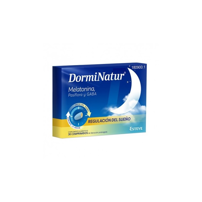 Dorminatur 30 Comprimidos es un complemento alimenticio de liberación prolongada formulado especialmente para favorecer un descanso reparador tanto en el inicio del sueño como a lo largo de la noche. para ello, contiene: 1.85mg de melatonina; Pasiflora 150mg y 100mg de Gaba, por comprimido.