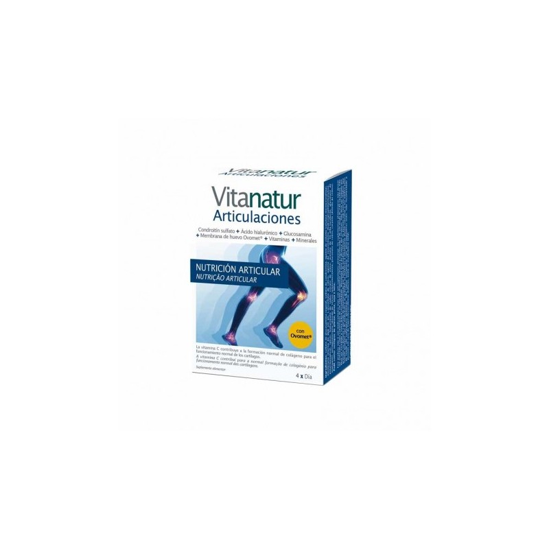 Vitanatur Articulaciones está formulado a base de Condroitín Sulfato, Ácido Hialurónico, Glucosamina, Membrana de Huevo Ovomet®, Vitaminas y Minerales. Todos ellos contribuyen a una disminución de las dolencias provocadas por el desgaste de articulaciones.