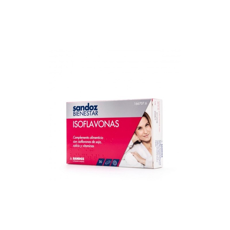 Complemento alimenticio con isoflavonas de soja, calcio y vitaminas.