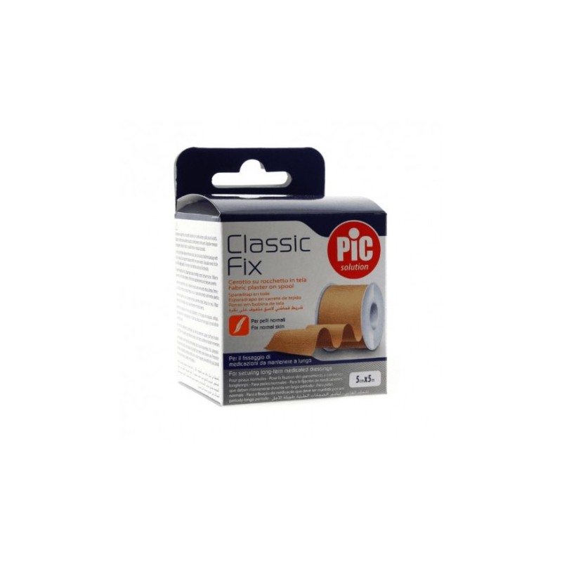 Pic Solution Classic Fix Esparadrapo Color Carne se trata de una solución sencilla y eficaz que podremos utilizar de forma práctica para la sujeción y fijación correcta de los vendajes, cambiándolos de forma frecuente en las pieles normales. En esta ocasión te presentamos el esparadrapo en un cómodo formato con carrete. El apósito se mantendrá adherido a la piel durante más tiempo sin importar en qué parte del cuerpo se haya producido la herida. Gracias a su elaboración ofrece una óptima transpiración y una gran resistencia del apósito a la piel.