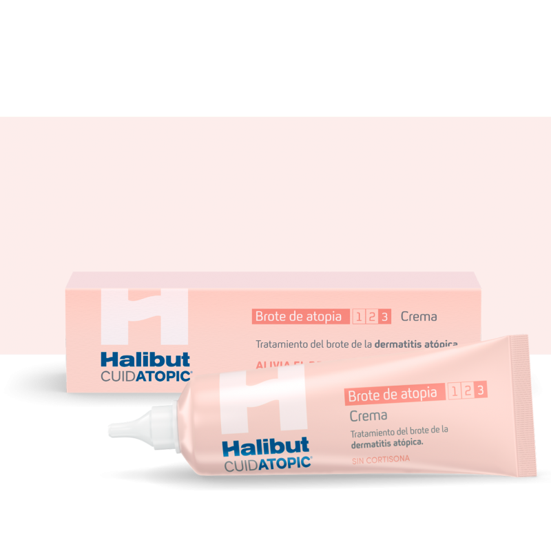 Halibut Cuidatopic Brote de atopia contiene una exclusiva combinación de ingredientes que, gracias a la formación de una película sobre la piel, alivia el picor, ayuda a calmar y a aliviar la piel irritada reduciendo el eritema y favoreciendo el proceso de recuperación natural de la piel.