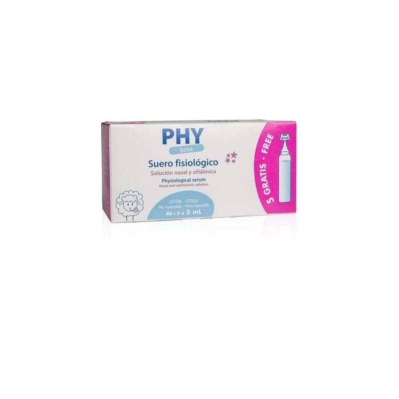 Phy Suero Fisiológico es ideal para la higiene diaria de bebés y adultos, ya sea para el lavado de fosas nasales, la higiene de los ojos (lavado y eliminación de cuerpos extraños) o la higiene de la piel (pliegues, cuello, cara).