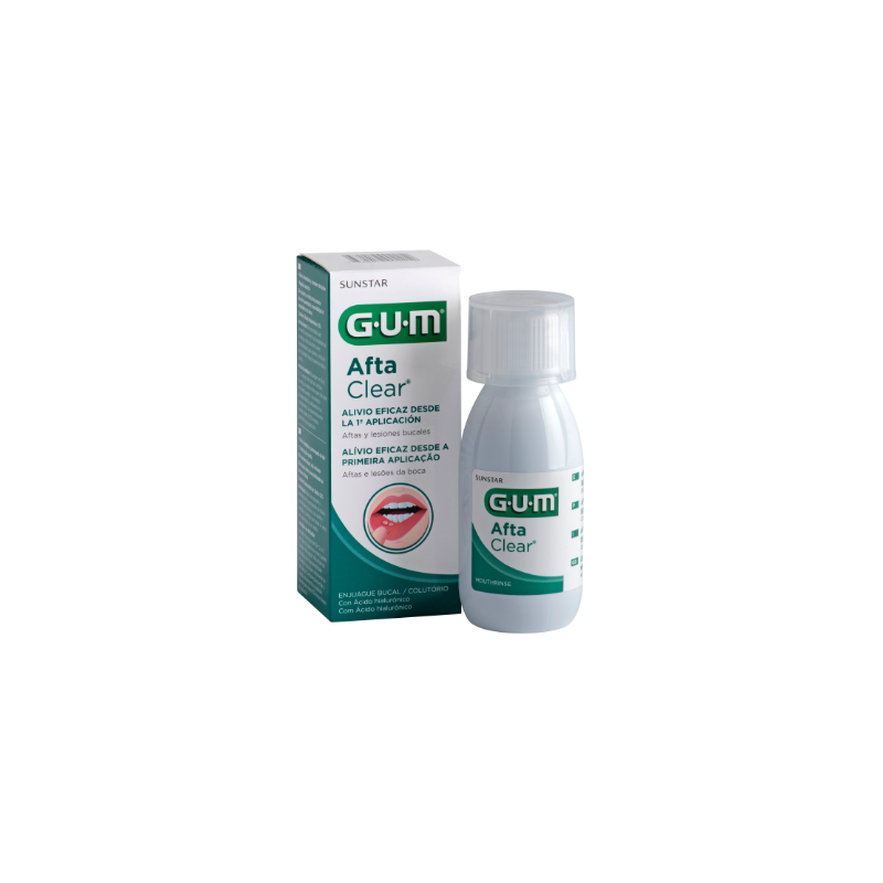 El colutorio GUM® AftaClear® actúa como una barrera para proteger la herida. Estimulando la curación y proporcionando un alivio del dolor.