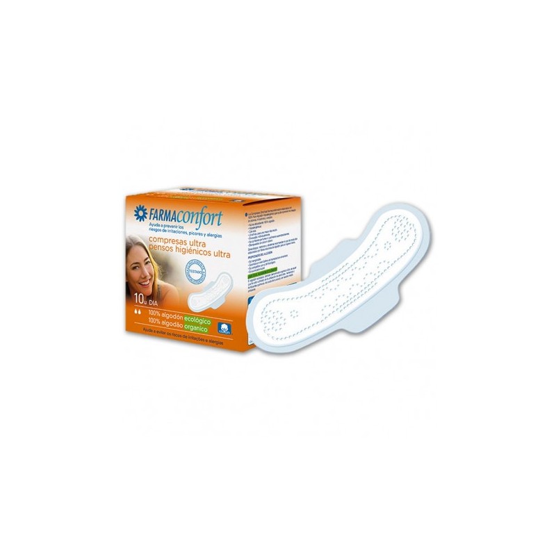 FARMACONFORT COMPRESAS DE ALGODÓN ULTRAFINAS DÍA CON ALAS 10 UNIDADES