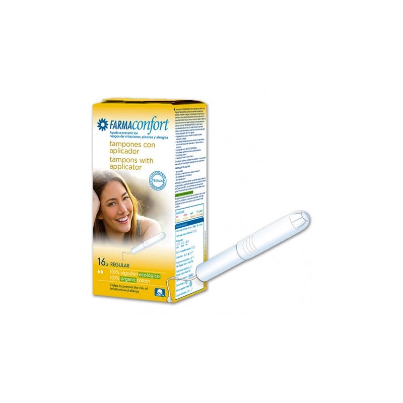FARMACONFORT TAMPONES REGULAR DE ALGODÓN CON APLICADOR BIODEGRADABLE 16 UNIDADES
