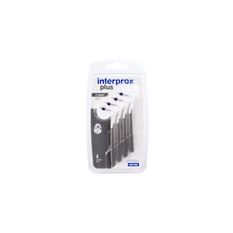 Interprox® Plus maxi ha sido diseñado para eliminar el biofilm oral (placa bacteriana) acumulado en los espacios interproximales de 2.4 mm, concretamente de la zona premolar o molar.