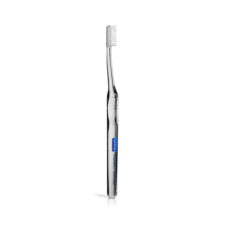 El cepillo VITIS implant sulcular está especialmente indicado para la eliminación de la placa bacteriana (biofilm oral) del surco gingival (margen de la encía) y surco periimplantario, zonas altamente importantes en las que debemos controlar la placa bacteriana.