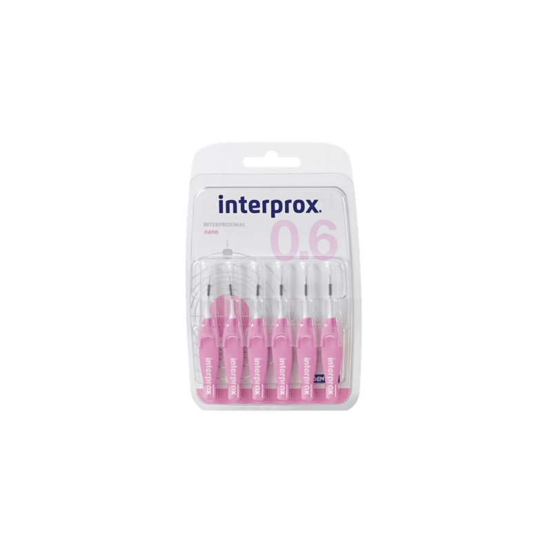 Interprox® nano ha sido diseñado para eliminar el biofilm bucal (placa bacteriana) acumulado en los espacios interproximales de 0.6 mm y es especialmente recomendable para los dientes anteriores.