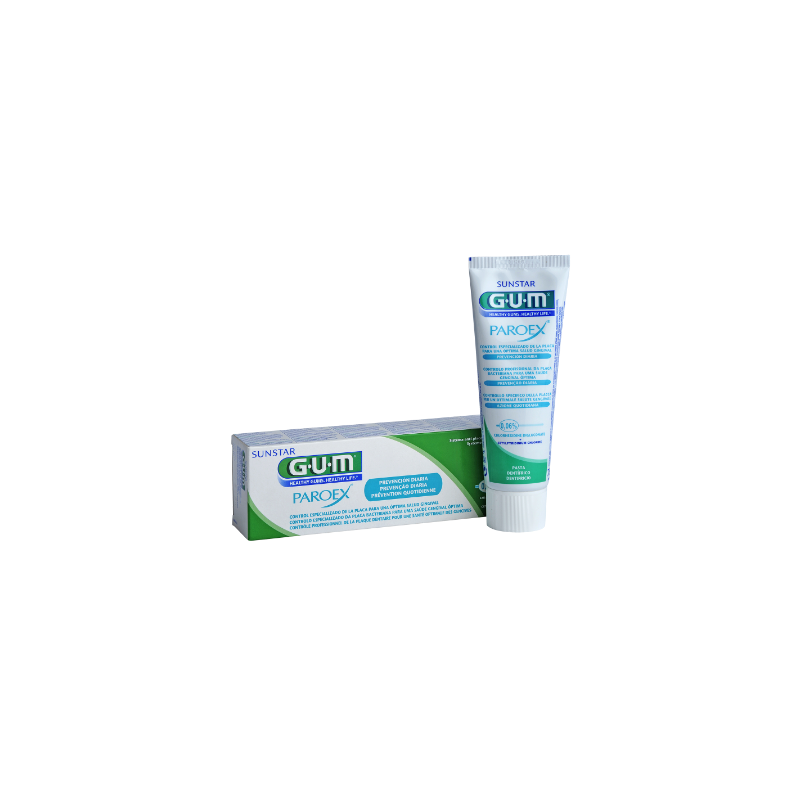 La pasta de dientes de mantenimiento GUM® Paroex® 0,06% ofrece un control profesional de la placa para conseguir una salud óptima de las encías. Además, reduce la acumulación de placa dental, alivia el dolor causado por las encías sensibles y mantiene sanos los tejidos de las encías.