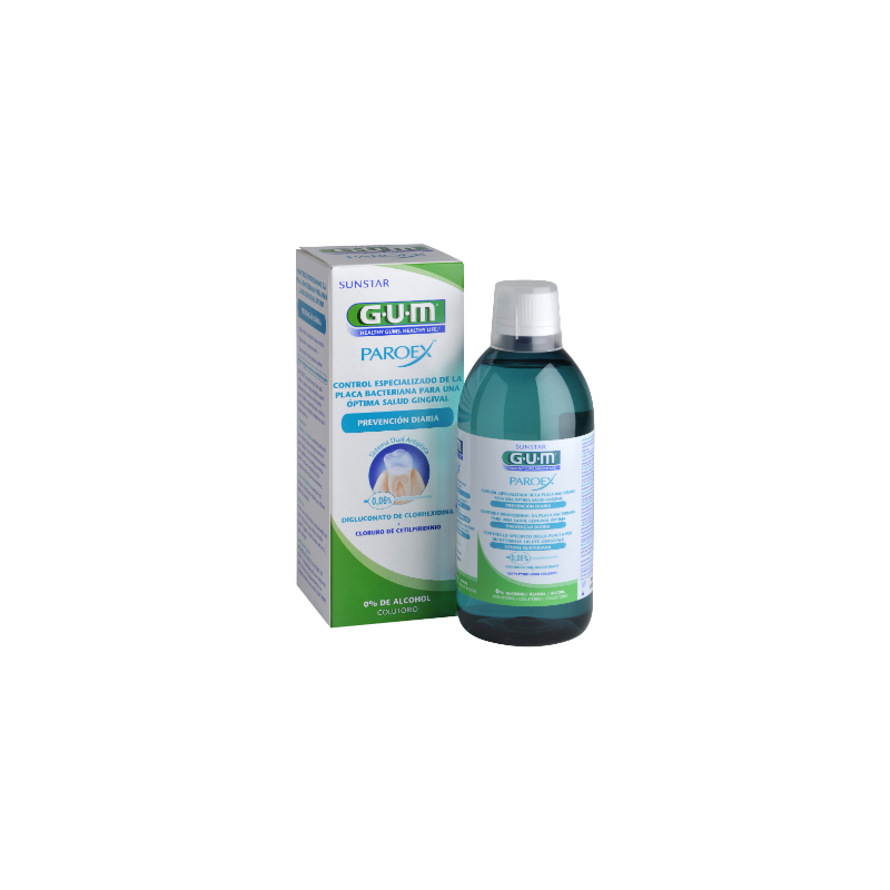 El colutorio de mantenimiento GUM® PAROEX® 0,06% tiene sabor a menta fresca y ayuda a mantener las encías en el mejor estado, a la vez que reduce la acumulación de placa.
