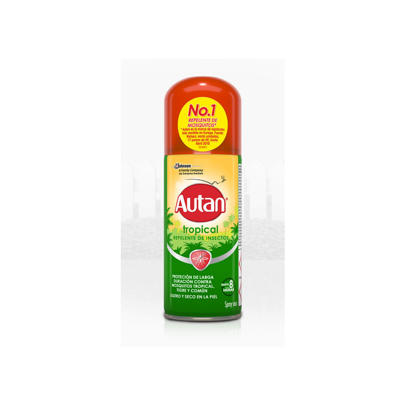 Autan® Tropical Spray Seco proporciona una protección eficaz e inmediata contra los mosquitos comunes, tropicales y tigre de hasta 8 horas. Gracias a su fórmula, que contiene como ingrediente natural almidón de maíz en micropartículas finas, se seca rápidamente en la piel.