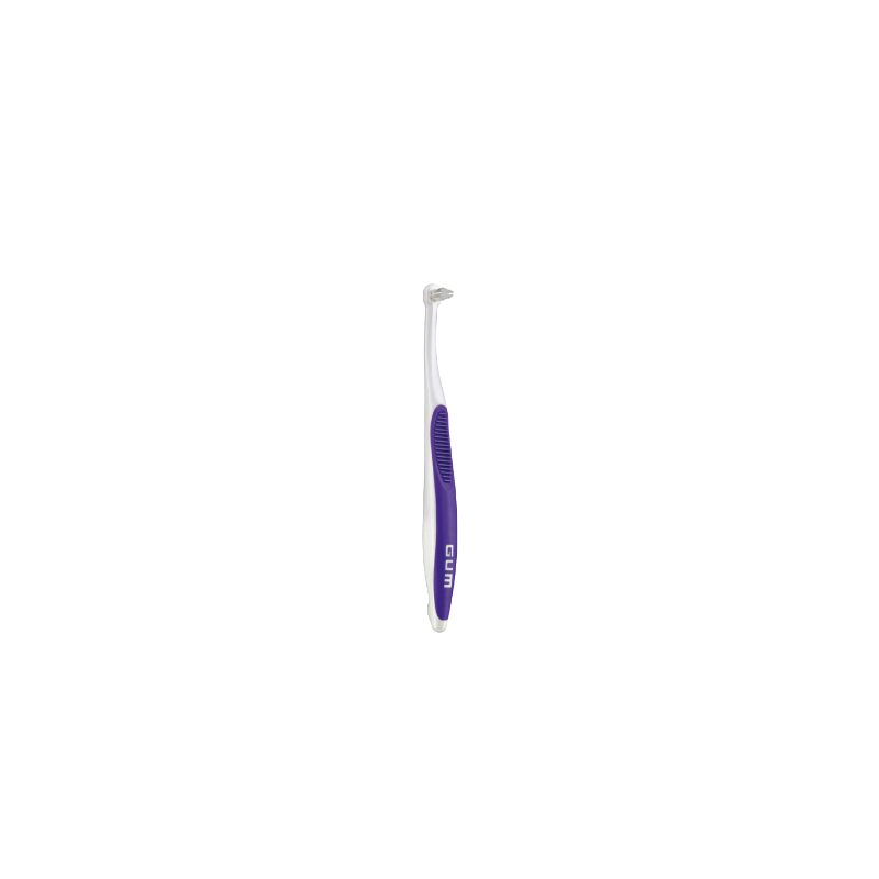 El cepillo de dientes GUM® End-Tuft llega mucho más lejos que un cepillo convencional. Con un cabezal extrapequeño, este cepillo de un penacho resulta perfecto para limpiar alrededor de bandas de ortodoncia e implantes.