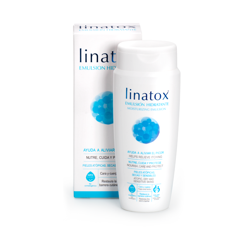 Linatox® emulsión hidratante ayuda a controlar los signos y síntomas asociados a la piel atópica (sequedad, picor, enrojecimiento e irritación) y también a reducir la inflamación neurogénica* de la cara y el cuerpo, fortaleciendo la barrera natural de la piel. Hidrata y protege de forma prolongada, devolviendo su flexibilidad y suavidad.