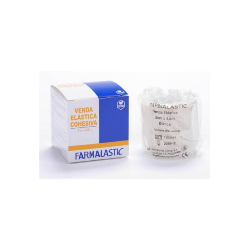 Venda Farmalastic Cohesiva Blanca 4,5 m x 5 cm es una venda elástica indicada para vendajes compresivos en caso de torceduras o esguinces, así como en afecciones que revelen insuficiencia venosa. Ideal para la sujeción de apósitos, entablillados.