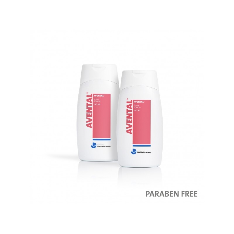 AVENTAL® TALCO LÍQUIDO es una emulsión fluida con propiedades lubricantes y suavizantes lo que la convierte en el tratamiento ideal por su eficacia en todas aquellas situaciones en las que se necesita un alto nivel de protección, como es el caso de rozaduras, escoceduras, prurito, hiperhidrosis e irritaciones.