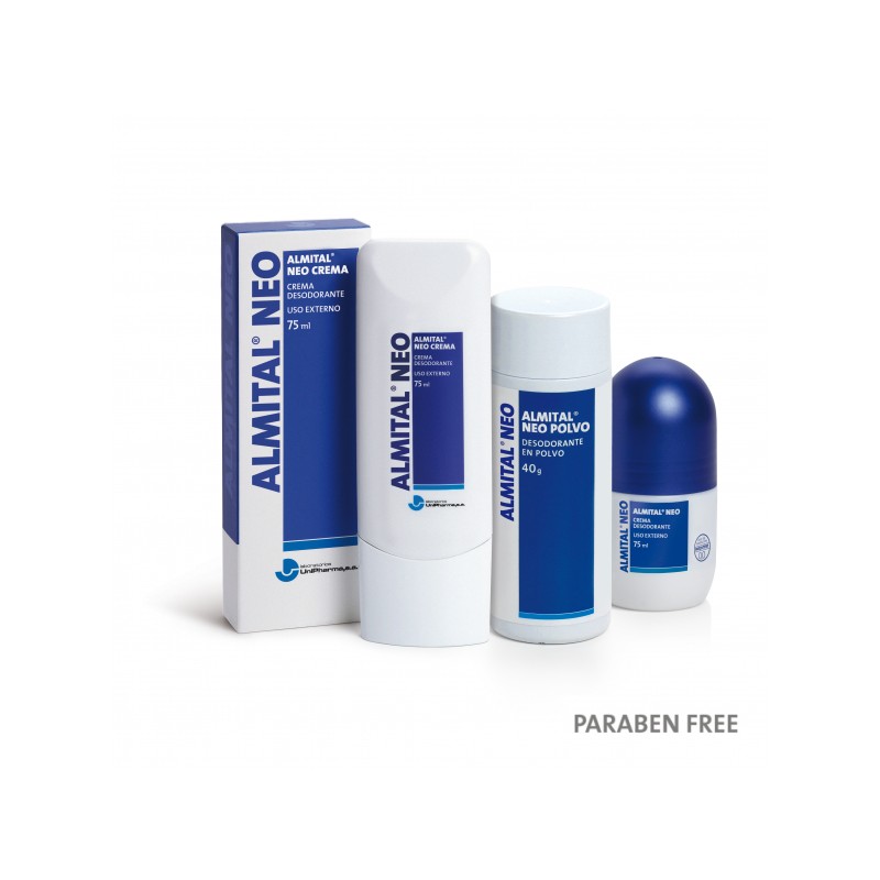 ALMITAL® NEO es un producto desodorante que proporciona un alivio sintomático, tanto de la sudoración excesiva, como del mal olor corporal debido a dicha sudoración.