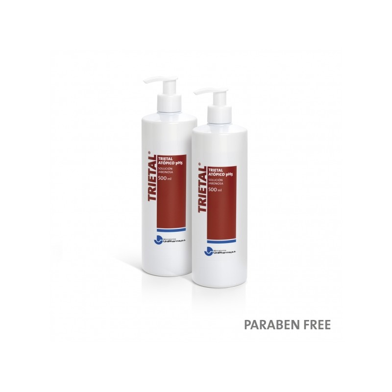 TRIETAL® ATÓPICO pH5 SOLUCION JABONOSA, debido a su composición, es un producto muy adecuado en pacientes con piel seca, tanto adultos como niños, gracias a sus propiedades hidratantes.